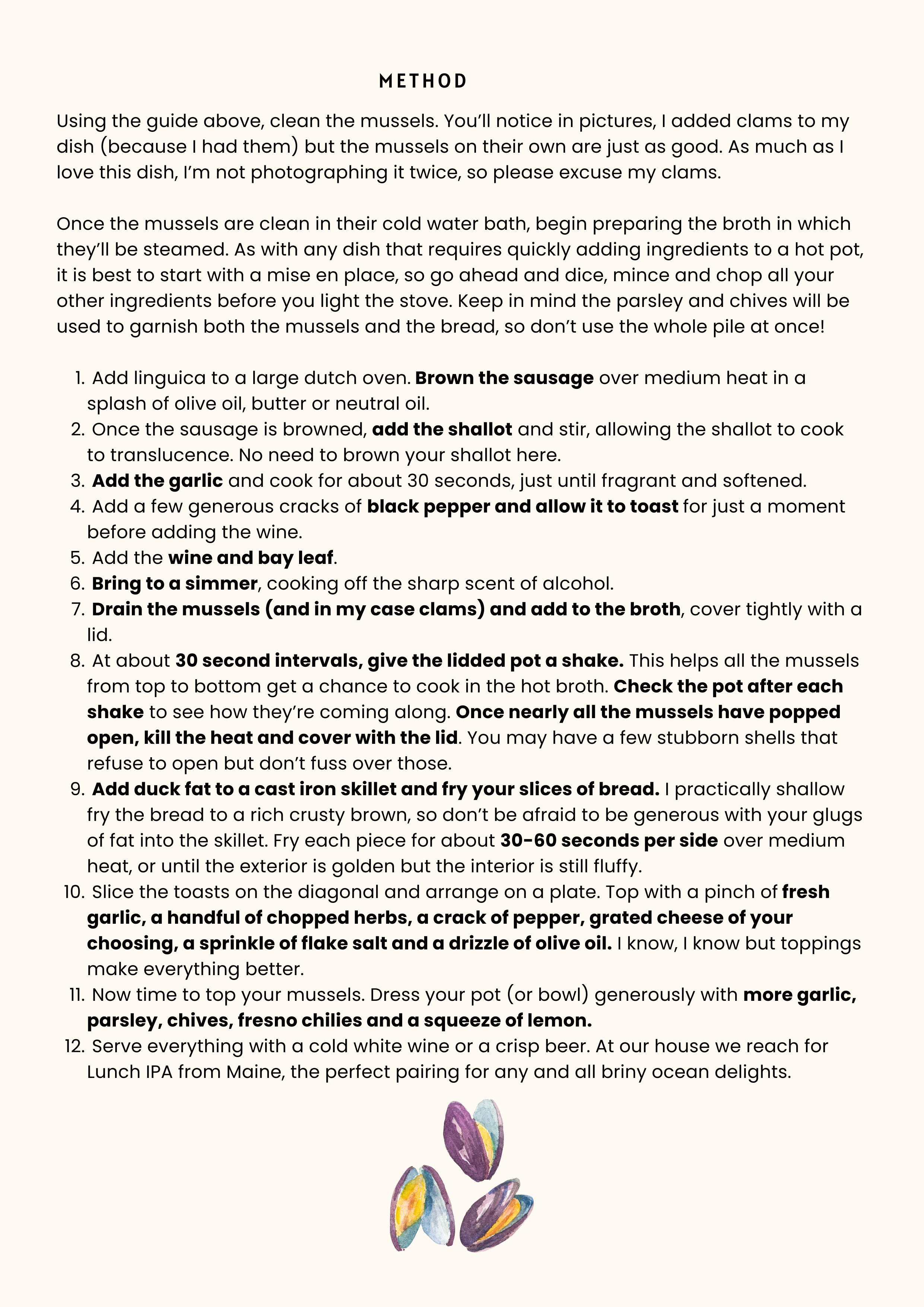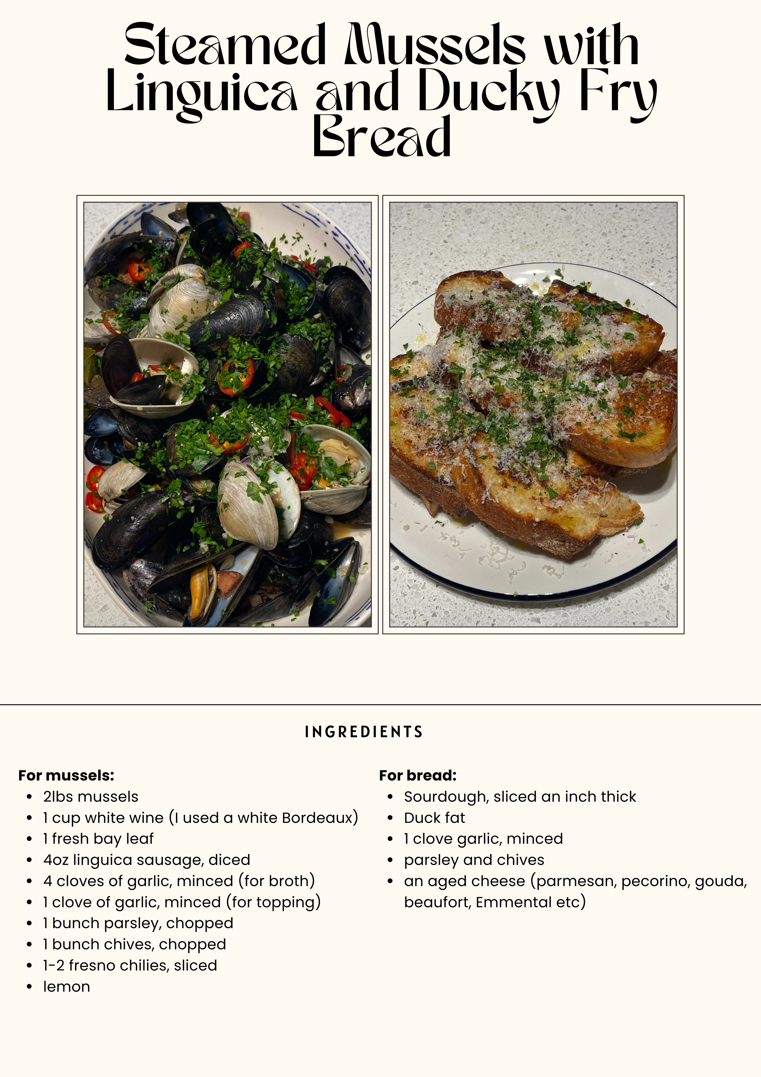 Steamed Mussels with Linguica and Ducky Fry Bread